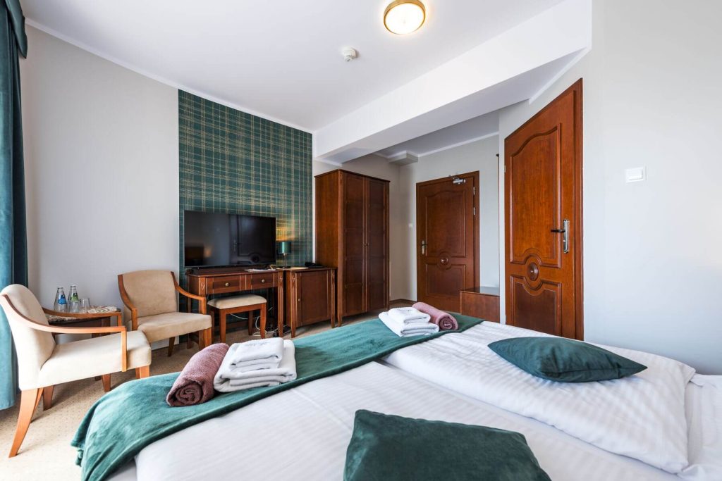 Die Standard-Doppelzimmer befinden sich im Erdgeschoss, im ersten oder zweiten Stock des Gebäudes. Es handelt sich um voll ausgestattete, geräumige Zimmer mit einer Größe von 13,5 bis 21 m².